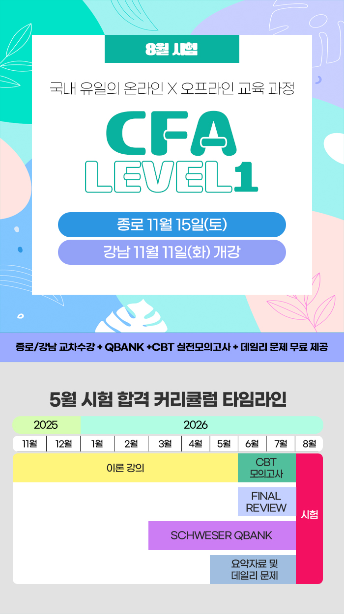 3. 교재 및 계산기는 별도 구매(Schweser Notes: 20만원)