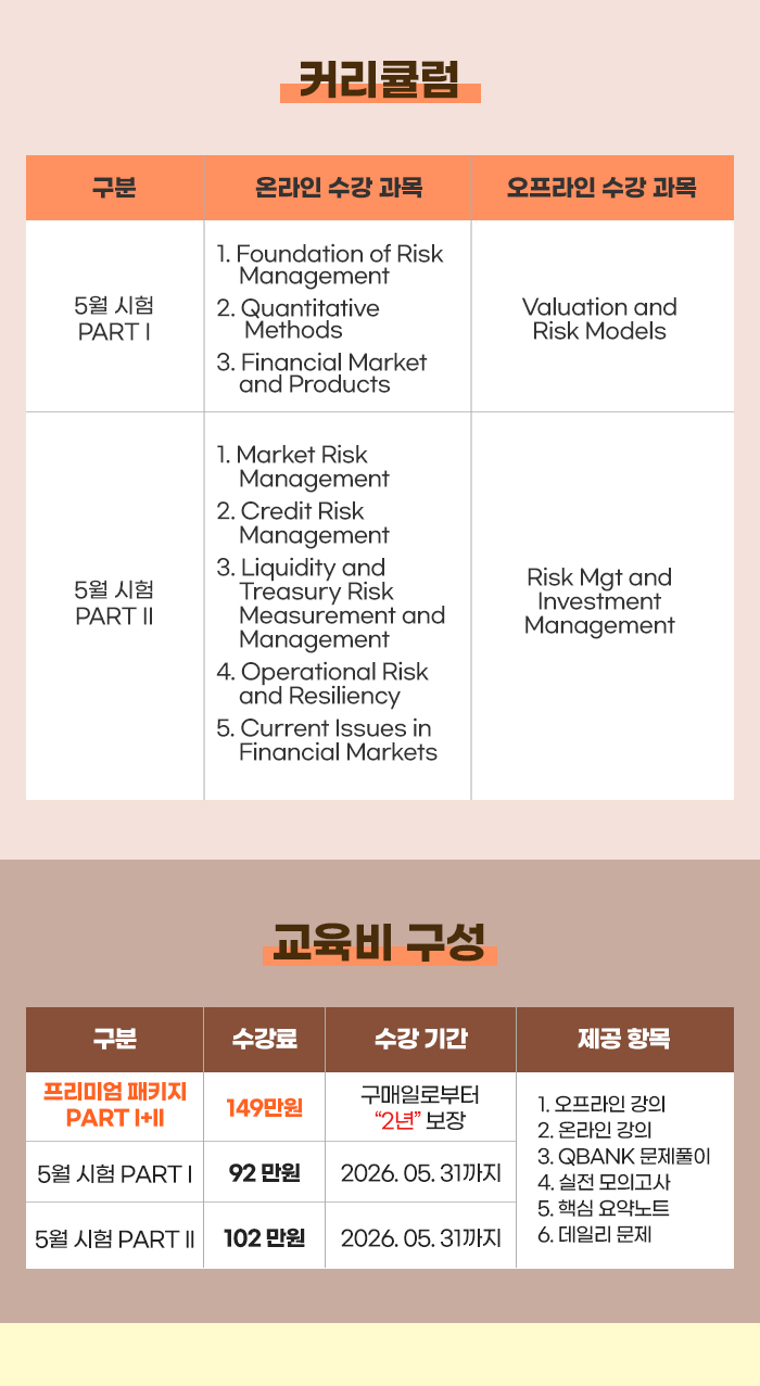 2. 할인 혜택 - KOSFI 재수강생: KOSFI에서 FRM 1을 수강하신 수강생 - 이패스 재수강생 : 이패스에서 FRM 1을 수강하신 수강생 - 재도전 응시생 : FRM 1 응시 이력이 있는 수강생