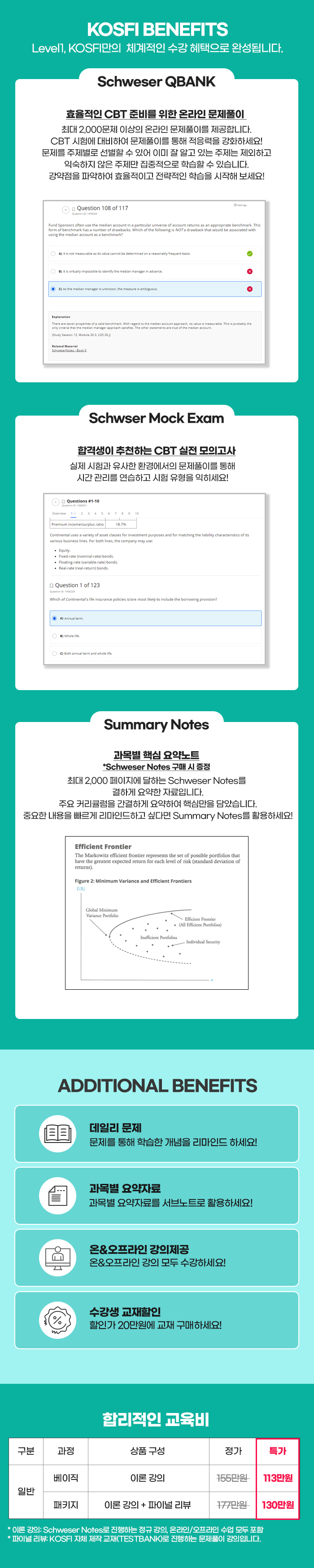 3. 교재 및 계산기는 별도 구매(Schweser Notes: 20만원)