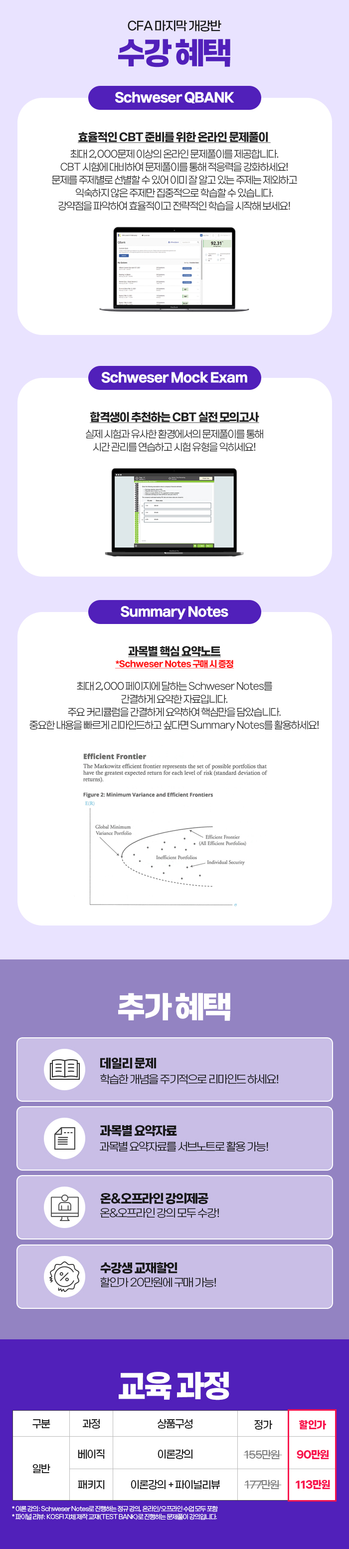 3. 교재 및 계산기는 별도 구매(Schweser Notes: 20만원)